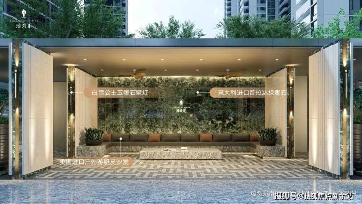 小区次入口分别打造了一个伴林归家景观,在这里,奢石、金属与精致有序的景墙完美融合,林间布有对景雕塑,还有罗汉松迎客,优雅归家的意境在此达到极致。