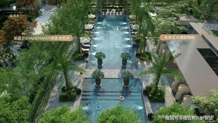 瑧湾汇的泳池设计,以对标泰国曼谷四季度假酒店为灵感,不出小区,便能感受到满满的东南亚度假风情。