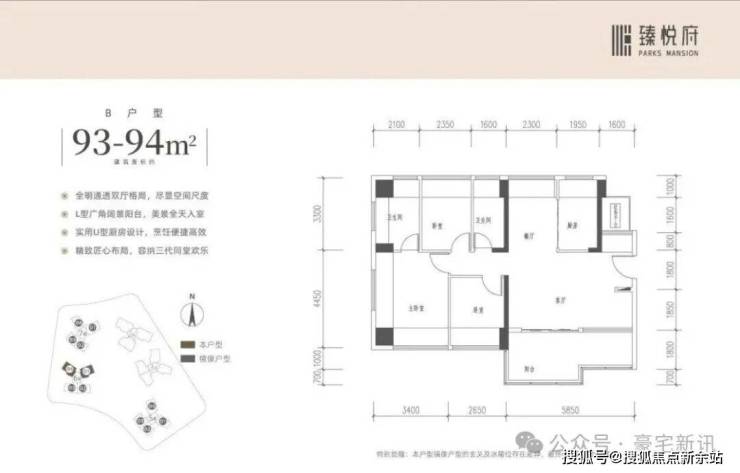【户型面积】约83-94㎡3-4房