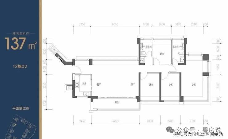 94㎡的3房2厅2卫,竖厅格局,客厅3.4米开间,三开间朝南,分别做到了主卧13.55㎡/次卧9.45㎡/次卧7.28㎡(含墙体飘窗),U型厨房,得房率约74%(不含赠送),加上赠送后得房率约84.22%。