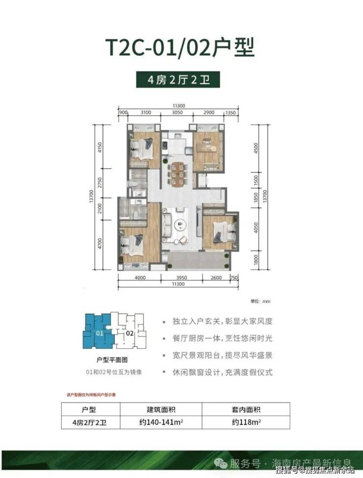→户型面积段:约110-141㎡(3房/4房)