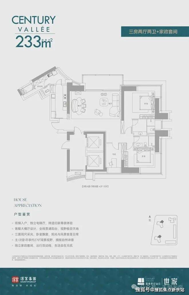 前两次都是公寓,现在住宅首发!还是定位相当高端的纯大平层而且还是无敌景观视野,8梯3户,233㎡/280㎡配备两个独立电梯,386㎡双梯设计,实在任性!