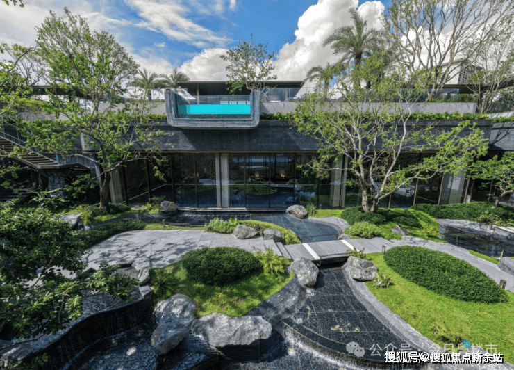 度假感下沉庭院,汲取东方园林山水造诣,因地制宜打造叠水叠石,形成特色森系庭院,漫步其间宛如森居度假。