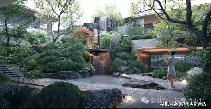 使用岭南园林「藏水于庭」的技法,在这里打造了一座立体花园,既承浣红跨绿之韵,又化山野飞瀑为庭中景。