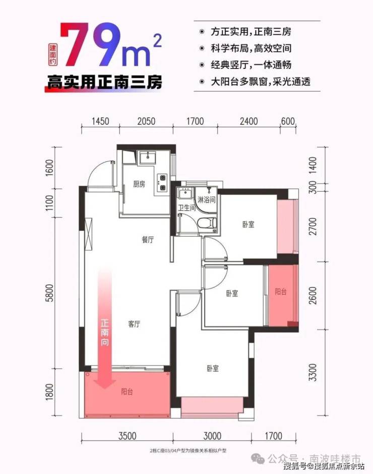 户型:建筑面积约78-79㎡极致三房两厅一卫,稀缺高性价比三房