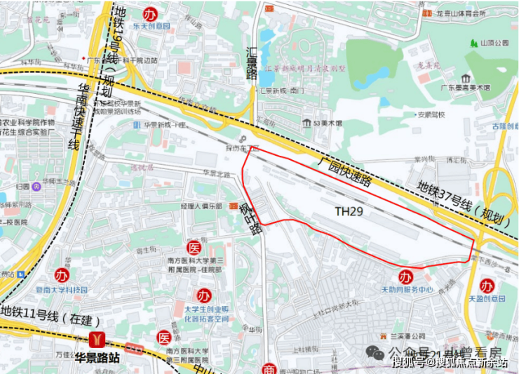 项目位于天河五山汇景新城板块内,珠江新城和琶洲金融城两中轴间的核心位置,楼盘身后就是汇景20年醇熟的圈层配套