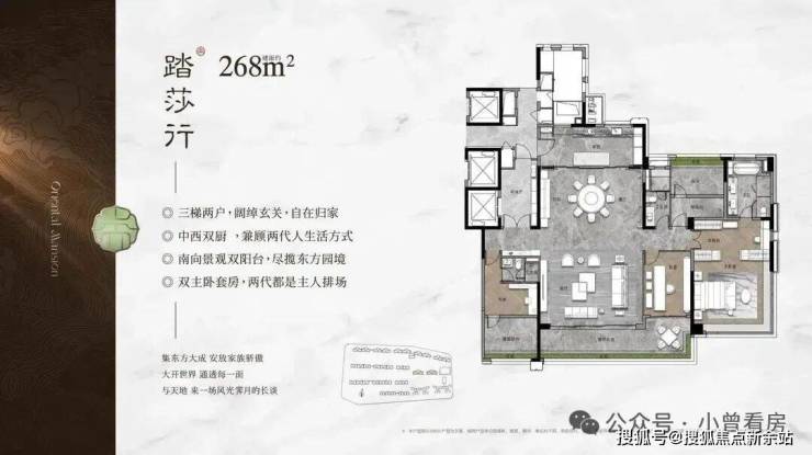 我们再来看看此次加推的268平的大面积户型,作为项目的旗舰,暗藏着哪些巧妙的设计?
