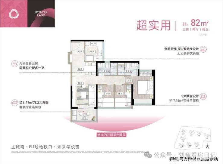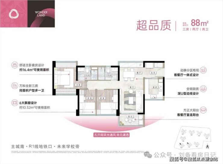 户型亮点:万科全新三房,同面积户型多一卫;采光通风俱佳