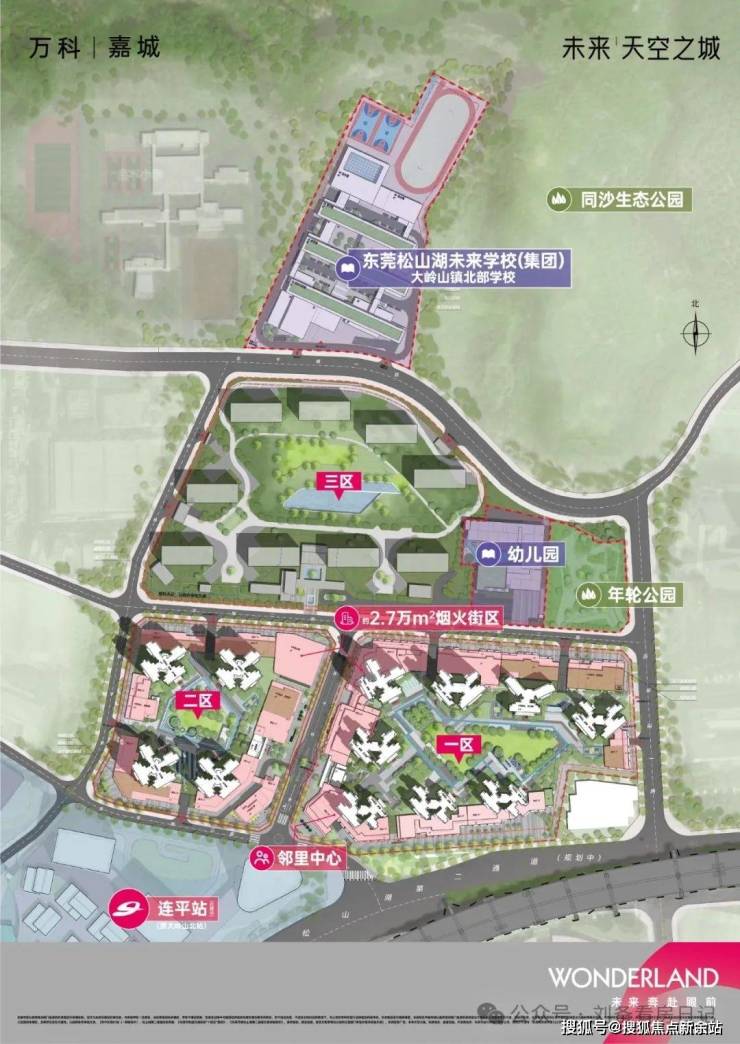 大岭山新盘万科嘉城·未来天空之城项目位于大岭山北站TOD,规划约66万平的体量,打造一座能代表城市的TOD未来超级生活大城。在项目旁边,是东莞松山湖未来学校教育集团成员之一的大岭山镇北部学校,据悉,该学校为公立小学,由未来天空之城项目配建。