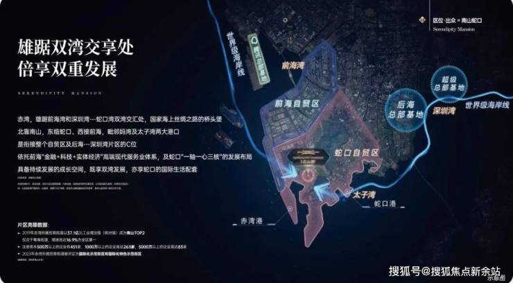 占位得天独厚,左边是前海,右边是太子湾、后海和深圳湾,前海蛇口自贸区中间位置,起到很好的衔接作用,位置上看类似一个交通要塞。
