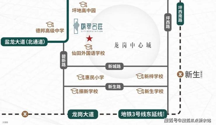 地铁三号线延长线在建,二十一号线规划中在建,紧挨龙岗大道,盐龙大道,外环高速环绕,出行交通便捷,出则繁华!