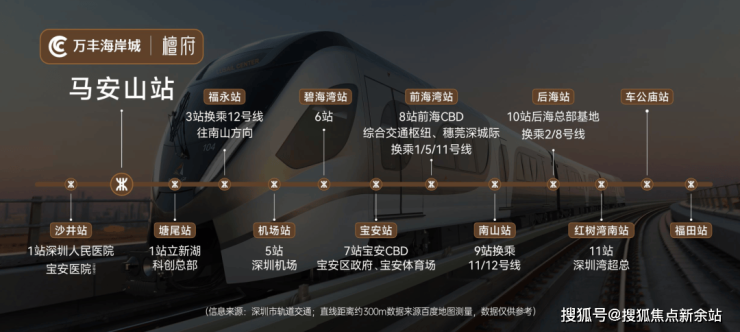 万丰海岸城邻近11号线马安山站,7站直达宝中、8站直抵前海,还能直线快速通达后海、红树湾、福田中心、车公庙枢纽,出行非常便捷,工作和生活可以快速切换。