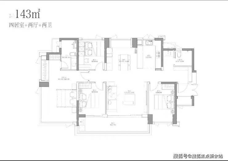 竖厅南北通透格局,进门入户玄关,客厅4.3米开间,餐客厅分离设计,四开间朝南,全屋八面飘窗,主卧做到了270度转角无柱飘窗,U型厨房,卫生间干湿分离,得房率约95.2%(包含赠送),客厅连接次卧出7.1米长的观景大阳台,全部主朝西南向,看大运公园景观。