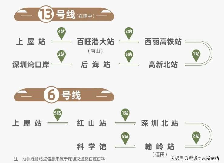 项目约直线距离400米抵达6号线、13号线(在建中)上屋站,6号线8站福田(翰岭站),13号线(建设中)4站南山、8站科技园(高新北站)。