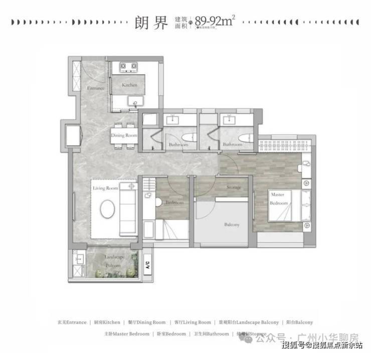 >> 建面约89-92㎡2房2厅2卫+1灵动空间 <<