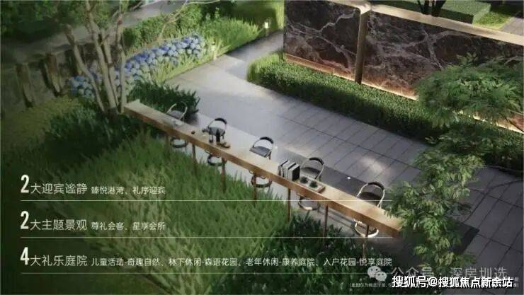 将自然之美与精致工艺融为一体,打造景观会客厅、艺术水景、户外吧台、阳光草坪等静谧空间。