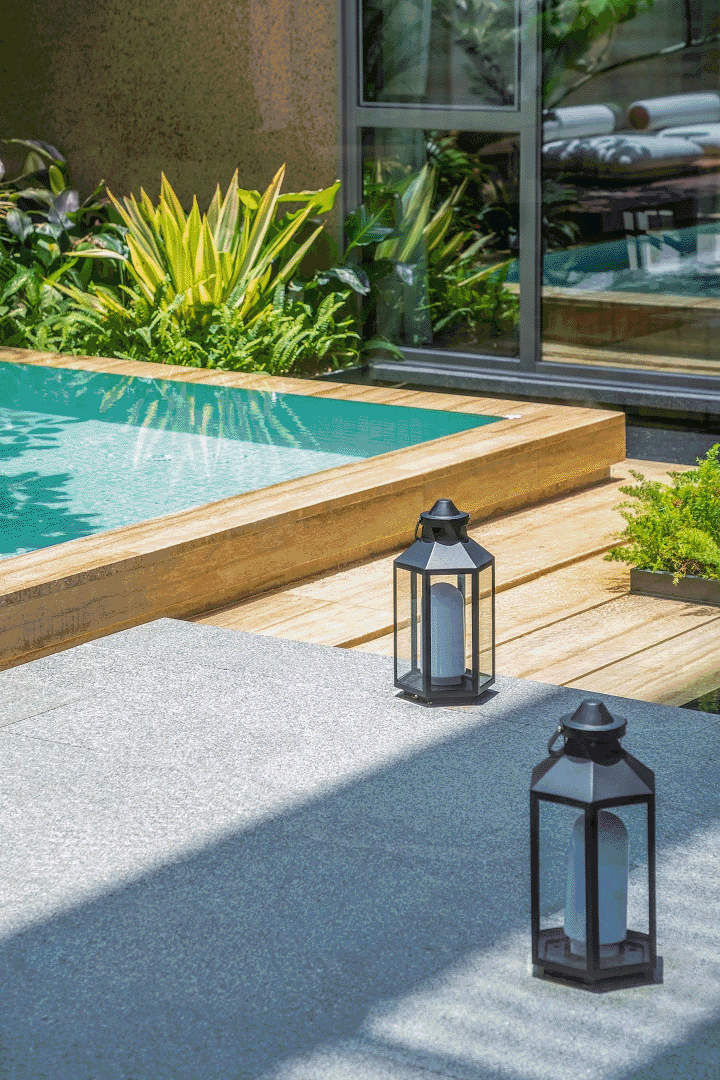 外立面的“岩”值, 甄选的是珍贵的 蓝眼睛纯天然石材 ,并结合海南特有的火山岩,另外通过大面积仿木纹铝板的搭配,让建筑外墙看起来更加 高贵典雅 。