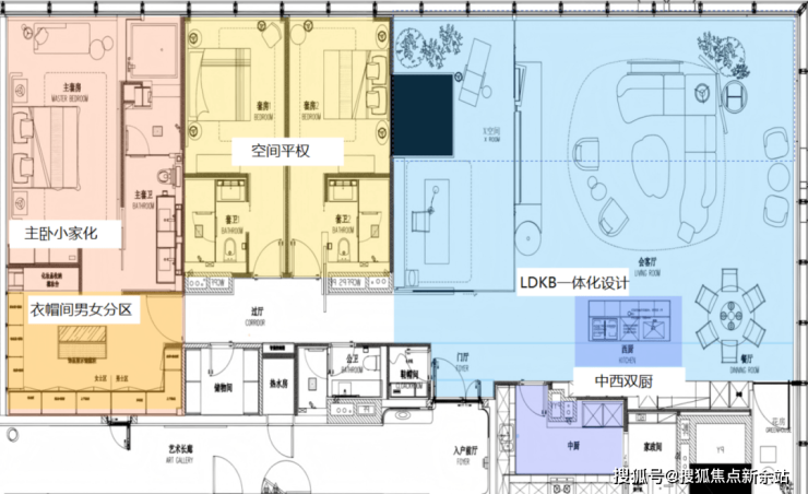 主力户型建面约340、480、620㎡,其中480㎡为LDKB一体化设计,X空间集艺赏、茶话、书房、私享四大功能,酒店式套房,为居住者营造舒心的体验。