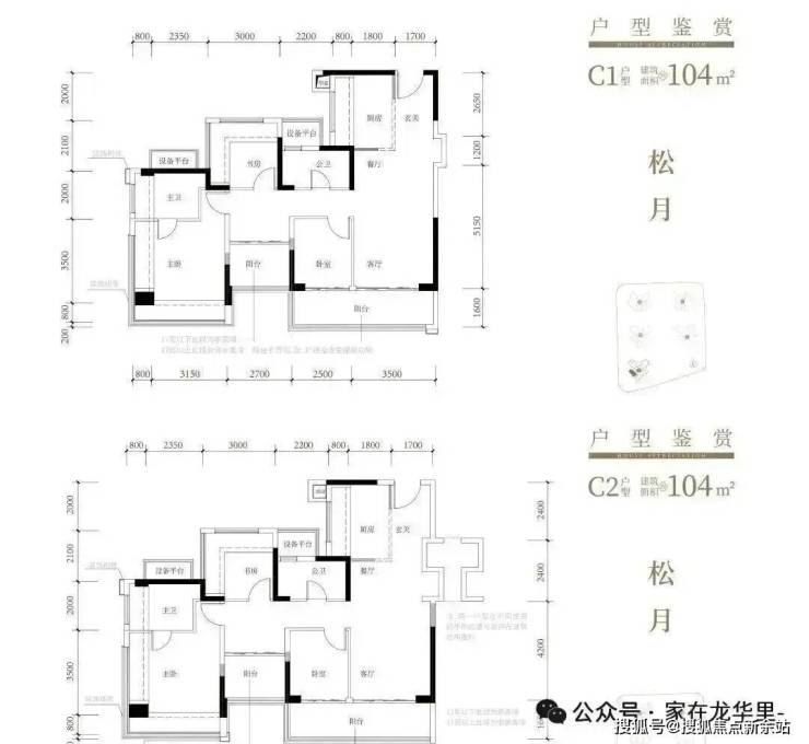 104㎡户型为3+1房2厅2卫设计,竖厅布局。该户型拥有约3.5米面宽的奢阔客厅,外连开间约6米的宽景阳台。