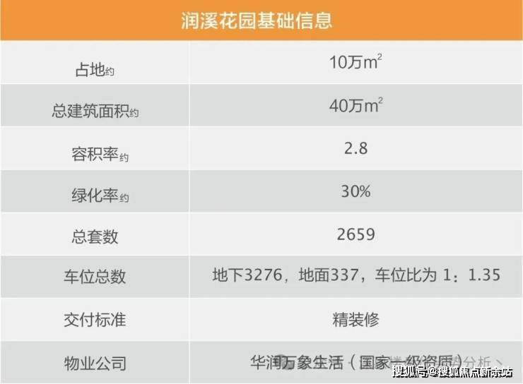 润溪花园是华润置地在大亚湾第一个楼盘,项目占地面积约为十万平米,总建筑面积约为四十万平米,容积率二点八,绿化率百分之三十,总套数两千六百五十九套,带精装修交付,物业公司为华润自己的物业,华润万象生活,国家一级资质,华润的物业全国知名