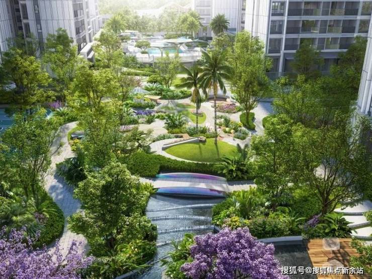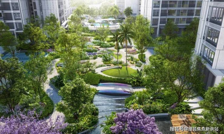 园林景观内,雨林泳池、春知学堂、海豚主题儿童乐园等功能空间有机铺陈,打造出复合多功能的公园活力社区,实现人与自然的亲密互动。
