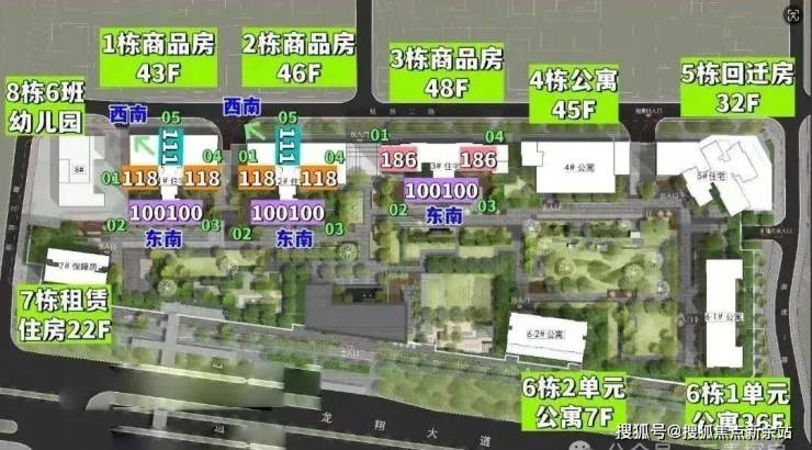 总规划1135套,其中商品房557套,回迁房214套,公共租赁住房及租赁型人才住房102套,商务公寓262套,3栋住宅是3梯4户,1/2栋住宅3梯5户,地下3层,停车位1548个,车位比1:1.36。