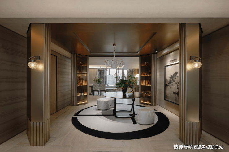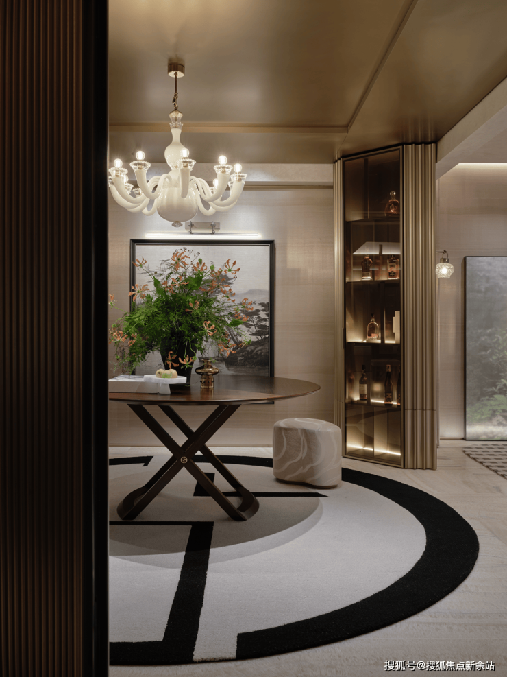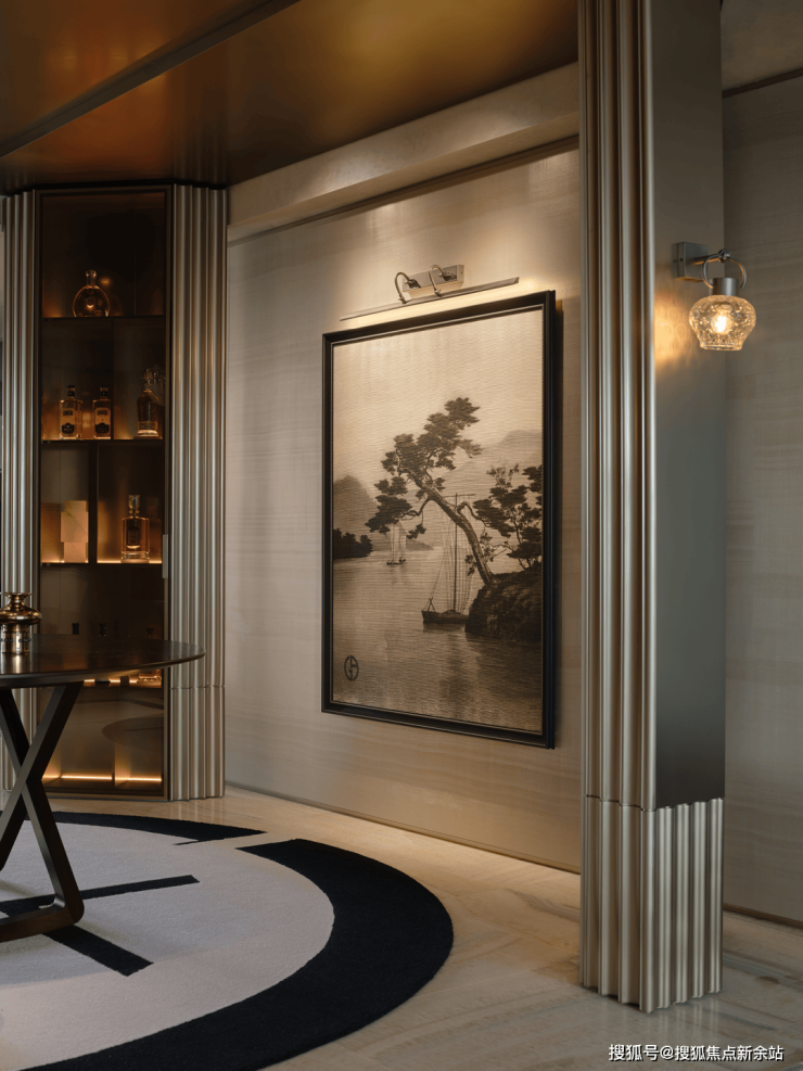 Armani Casa的设计将水墨刺绣融入到居室中,巧妙地布局,描绘着举杯谈笑、雅士风度的迎客之道。