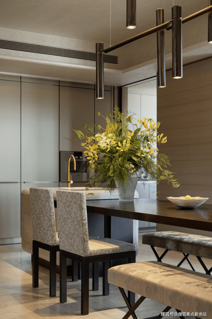一体化客餐厅与餐厨的人性化设计,开放、交互,自由,构建了一个充满记忆的多功能用餐场所。