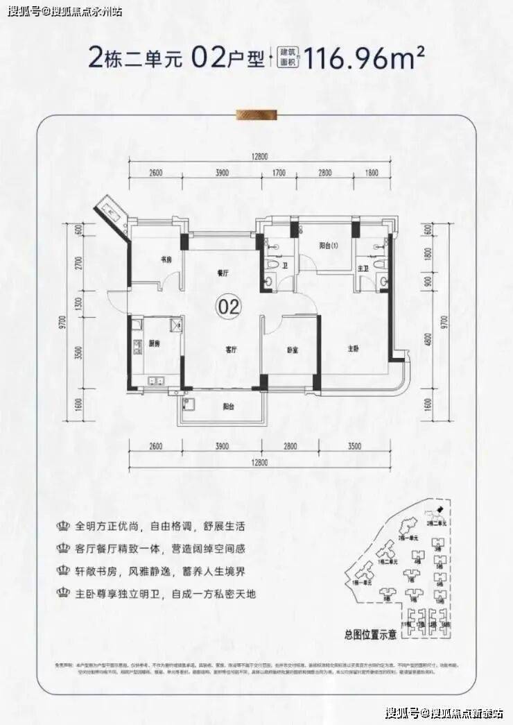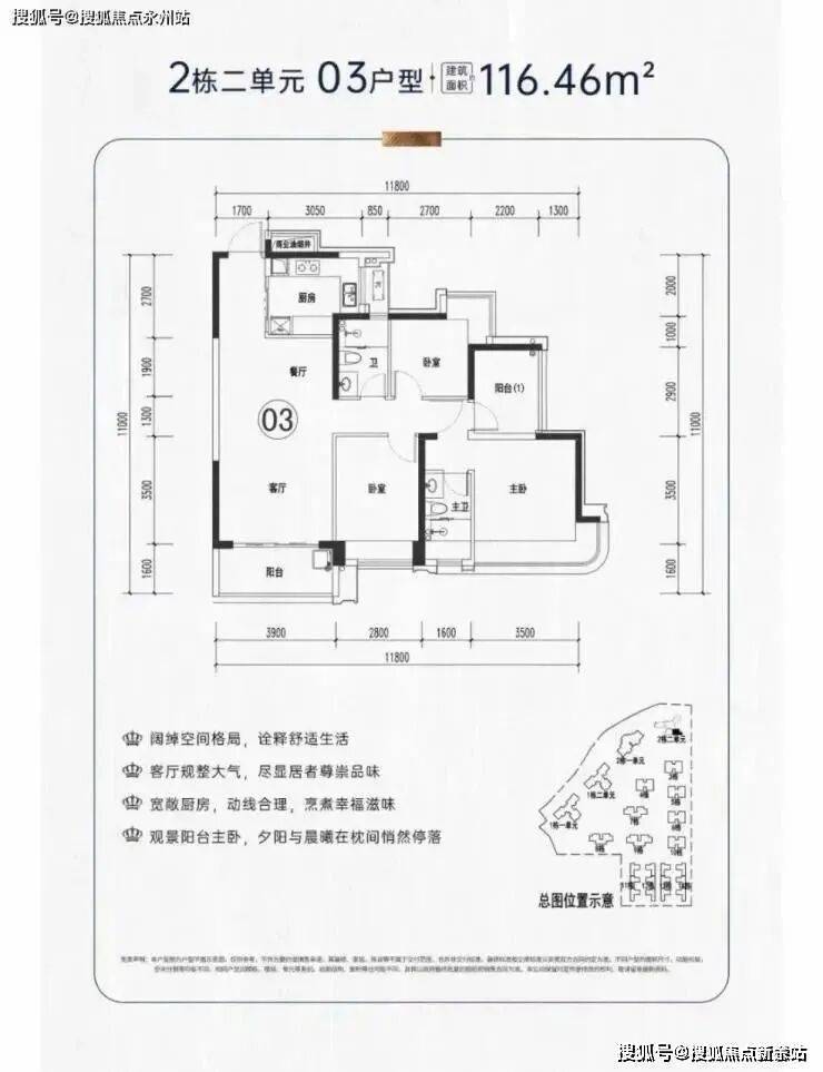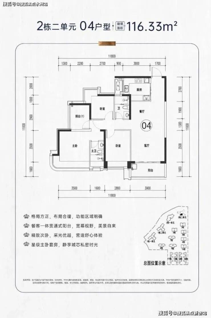 项目户型介绍:社区产品面积段包括112-116-120㎡4房2卫,195㎡4+1房4卫,本次推出116户型4房2卫