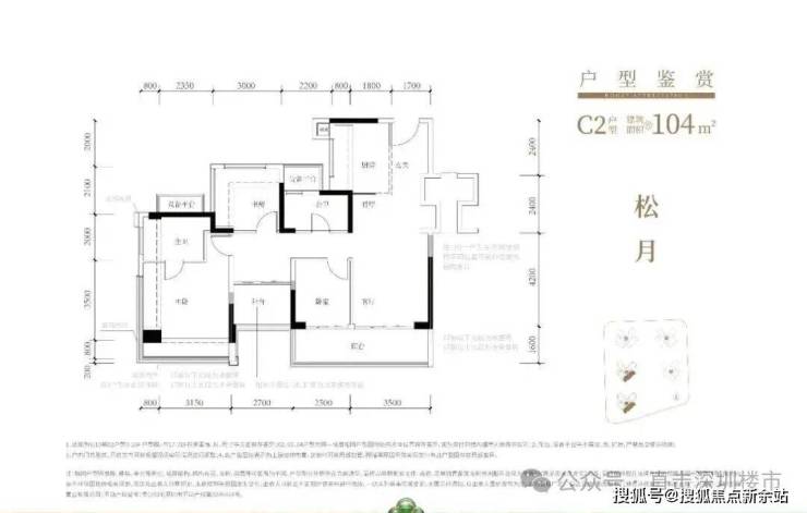 104㎡的4房2厅2卫,折后总价517-601万/套,单价约5-5.81万/㎡。