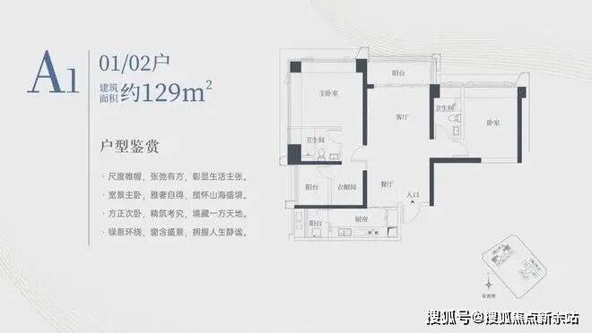1栋一单元A1、A2户型:面积约为129㎡;