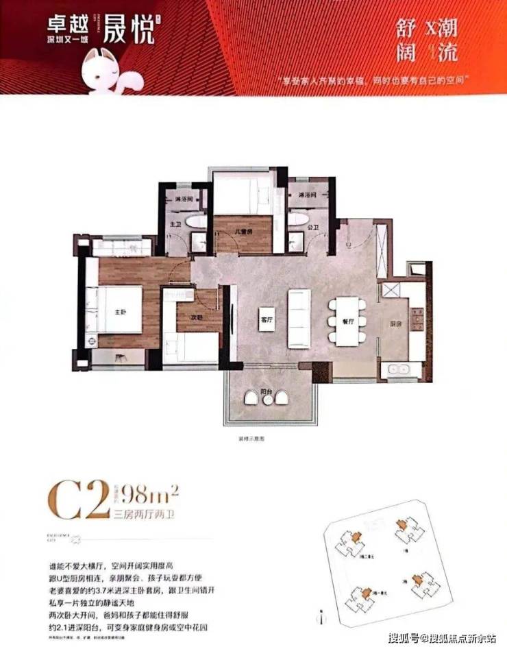 【产品类型】建面约68-98㎡二-三房