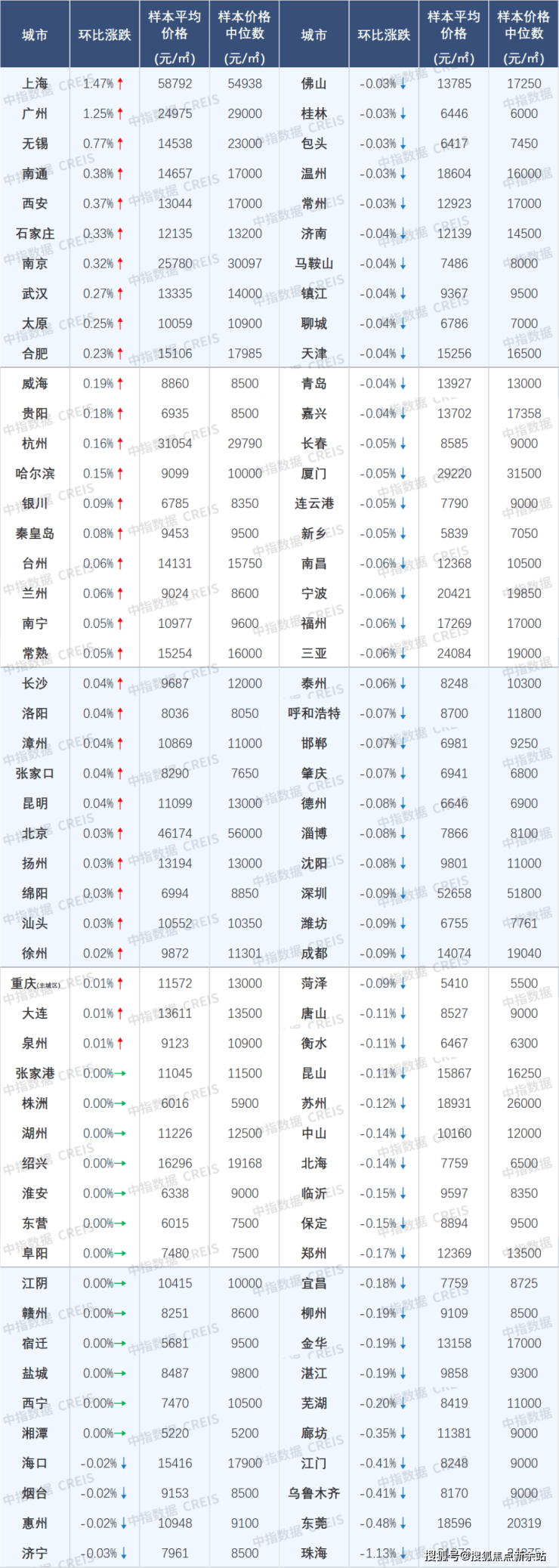 5月上海领涨百城新房价格指数,百城二手房价格环比均下跌