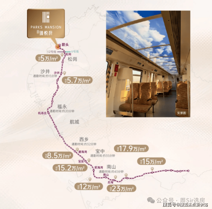 项目位于宝安区松岗街道松福大道与朗碧路交汇处,与地铁11号线终点站碧头站直线距离仅约300-400米,步行约5-8分钟即可进站。作为始发站,工作日早高峰全线行车间隔已压缩至3分26秒,且上车有座,通勤体验极佳。1站即可换乘地铁6号线及在建12号线二期,三轨交汇可快速通达宝安机场、宝中、南山科技园、后海、福田CBD等核心区域-1-5。自驾方面,项目紧邻松福大道,可快速接入外环高速、广深沿江高速、京港澳高速等,约30分钟可达南山科技园-1。