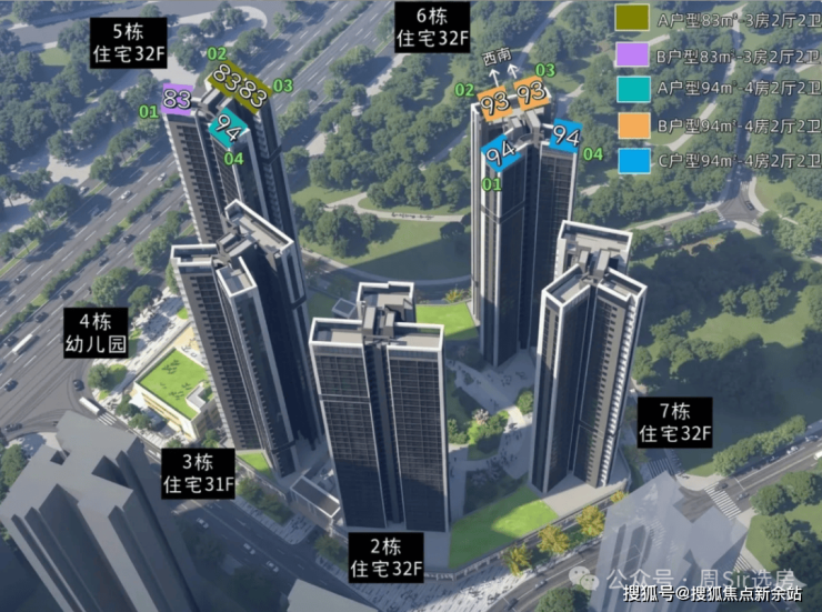 璞宸臻悦府总占地面积约2.03万㎡,总建筑面积约11.62万㎡,规划由6栋30-32层的小高层住宅围合而成,总户数693套(可售商品房约372套),容积率仅3.9,车位配比高达1:1.22-5-8。作为宝安首个严格按深圳“建筑新规”设计的楼盘,项目所有户型均通过大面积飘窗、阳台赠送实现了超100%的实际使用率,且全部为户户朝南设计,2栋楼王为2梯3户,其余楼栋全部2梯4户的低密梯户比-1-3。