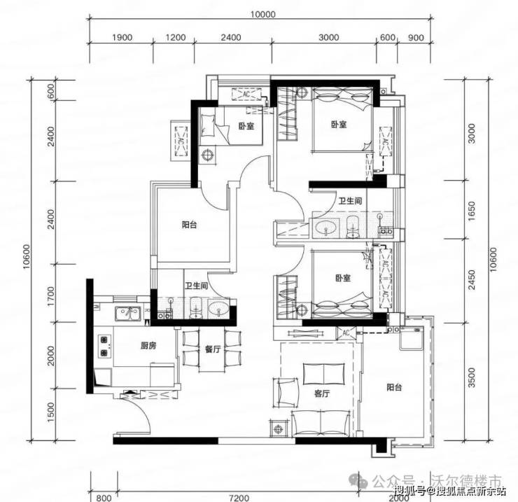 ✅ G03户型:约81㎡ 三房两厅两卫: