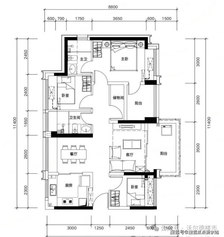 ✅高清户型图电子档(标注尺寸+采光分析+公摊面积)