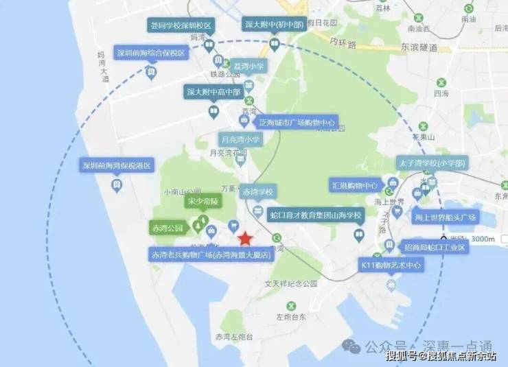 地块周边教育、商业配套,医疗配套有待提升,3km范围内有赤湾学校、月亮湾小学、太子湾学校、深大附中、K11购物艺术中心、海上世界船头广场、嘉盛荟商业中心、泛海城市广场等。