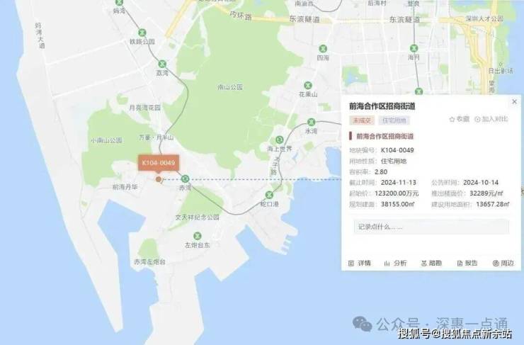 K104-0049地块位于前海合作区招商街道,无配建、户型不受限7090政策,是一块纯商品住宅开发用地。