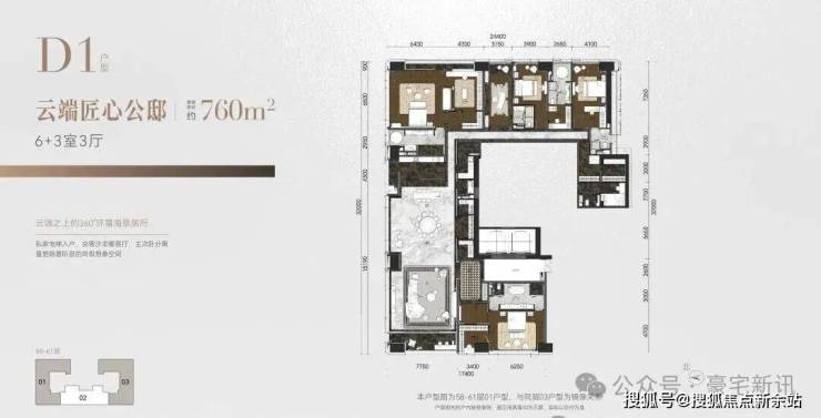 ◎建面约760㎡ 6+3室3厅,云端匠心公邸