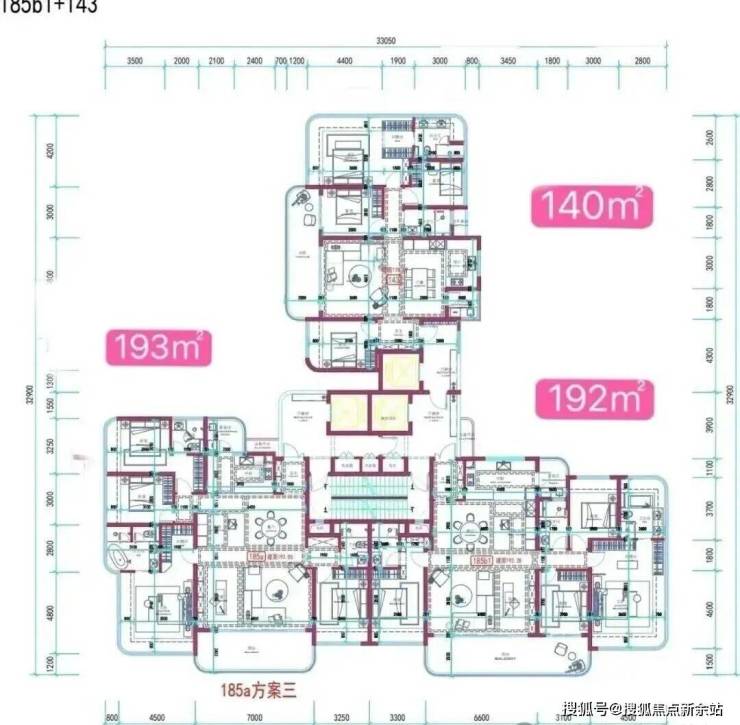 253–332㎡家族平层:2T2板楼设计,独立入户,双主卧套房均带海景卫浴,视野无遮挡,定位为顶奢客群。