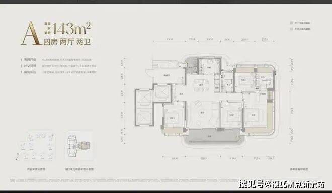 项目面积有140-143㎡的4房2卫,168-190-193㎡的4房3卫,253-254-260㎡的4房4卫,332㎡的4房5卫户型,500㎡天际大平层,共629套房源,纯南向户型,预计在2028年底带高品质精装交付。
