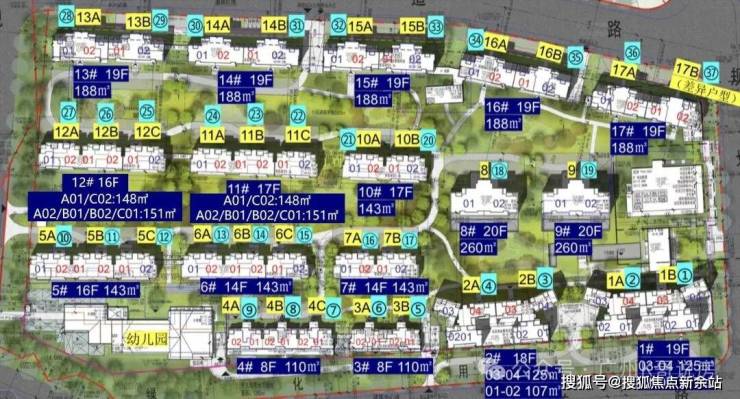 小区一共规划2栋塔楼以及15栋板楼,共17栋楼,层高在8-20层,楼距普遍在40-50米之间,居住舒适度不用多说。