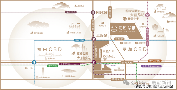 📍3地铁:3/9号线红岭站、9号线园岭站、17号线大塘龙站(在建中)
