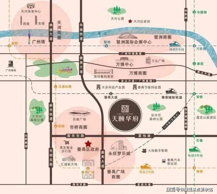 天颐华府位于广州市番禺区中心板块,踞位番禺广场TOD枢纽上。