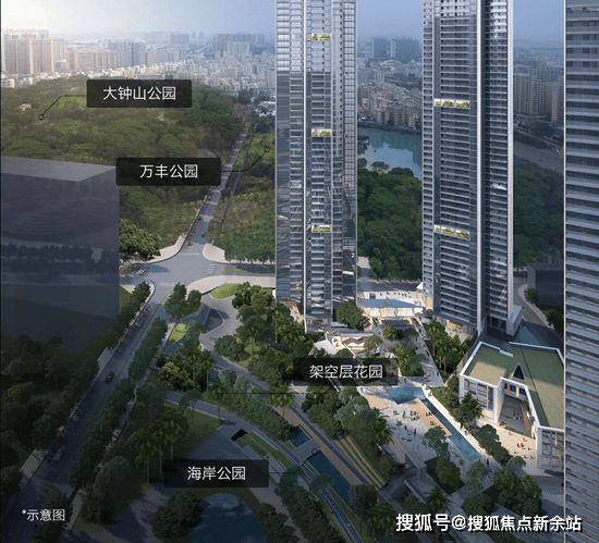由海岸公园、大钟山公园、万丰公园(规划中),形成立体生态体系。