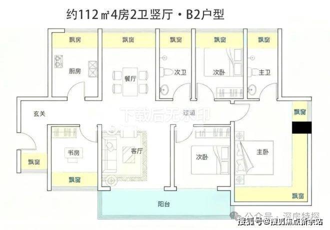 户型面积为105-188㎡纯四房,2梯4户,西南向无遮挡看海,西北向看高尔夫+碧海湾公园。