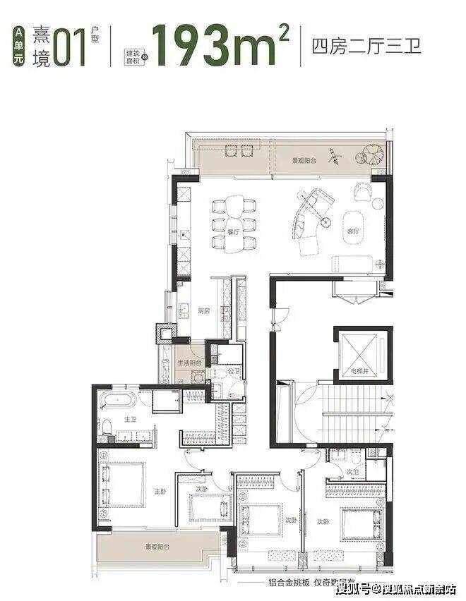 建面约 193 ㎡ 01户型 4房2厅2卫