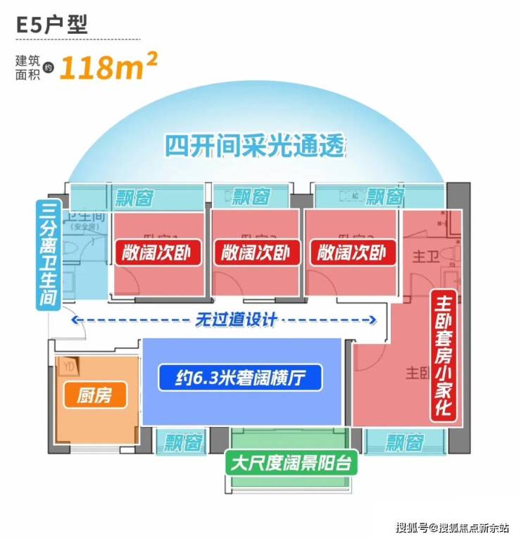 约100㎡的三房户型,三开间全部朝南,通风采光无死角,尽享阳光的宠溺。