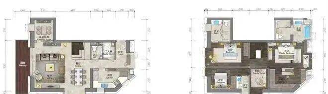 113㎡复式三房两厅三卫+工人房:南北通透三面景观,5.6米客厅与主卧开间,独具品位,尽享奢阔。